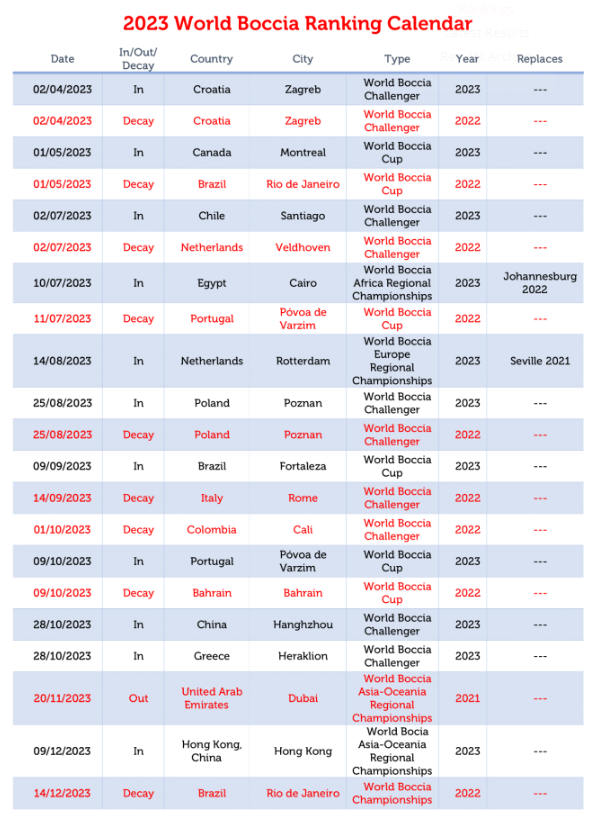 O Ranking Mundial da BISFed [Federação Internacional de Boccia] foi atualizado durante no passado dia 6 de abril, após o Zagreb 2023 World Boccia Challenger.