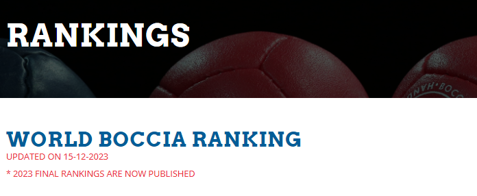 O Ranking Mundial da BISFed [Federação Internacional de Boccia] foi atualizado durante o dia de hoje, ficando assim o ranking fechado relativo ao ano 2023.