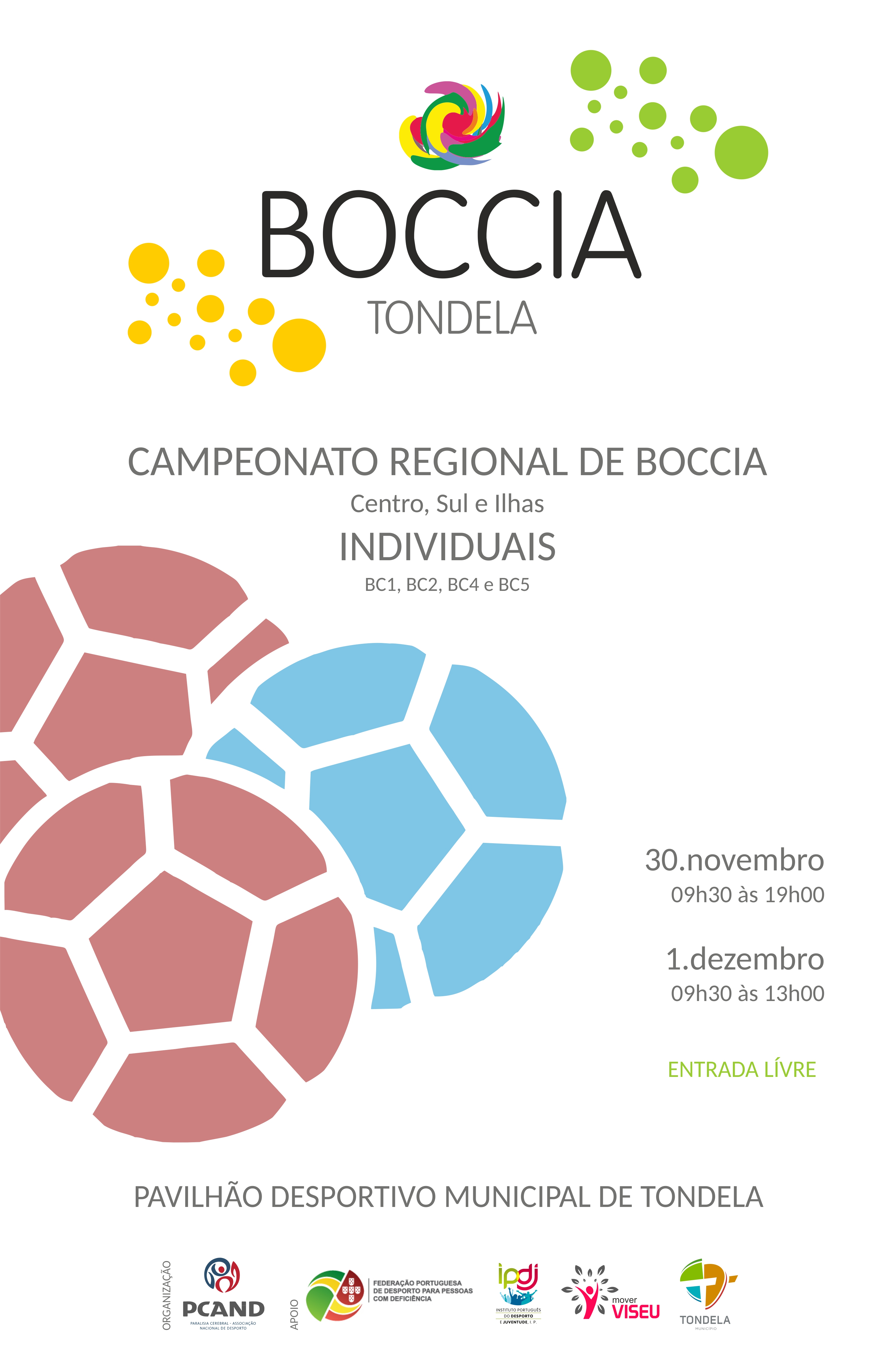 Decorreu no passado fim de semana, dias 30 de novembro e 1 de dezembro, em Tondela, o Campeonato Regional de Boccia 2019-20, regiões centro, sul e ilhas, nas categorias de Individuais BC1, BC2 (1ª e 2ª divisão), BC4 e BC5.