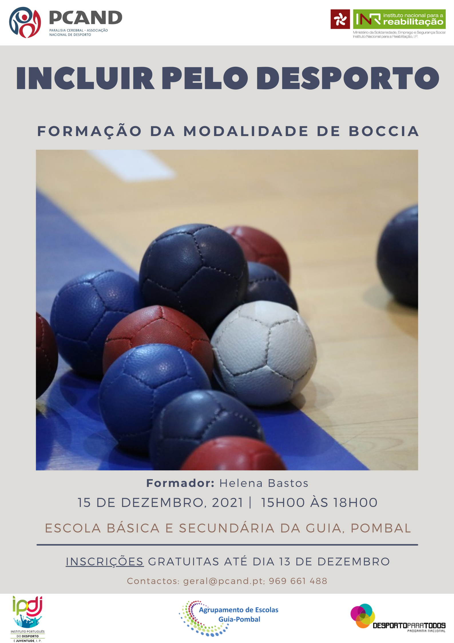 A PCAND irá realizar mais uma ação de formação no âmbito do projeto "Incluir pelo Desporto", cofinanciado através do Programa de Financiamento a Projetos do Instituto Nacional de Reabilitação, I.P. (INR), desta vez na Guia (Pombal).